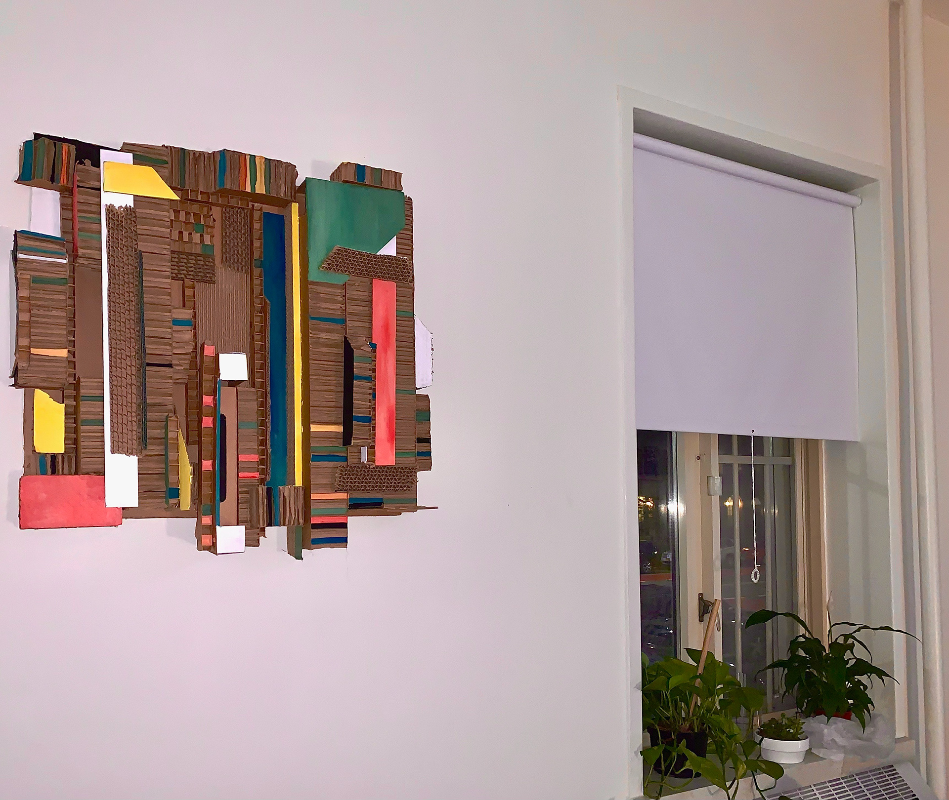 This cardboard collage was inspired by the large buildings and long streets of new York City during the covid19 pandemic. the streets were empty and I wanted to portray the negative space left behind while still capturing the bold and bright colors of the city.